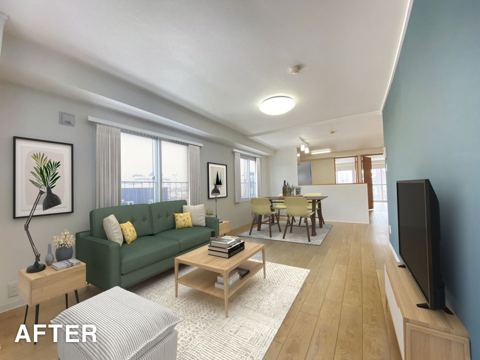TOP画の「デジタルステージング」を行った場合は家具家電がCGで配置される為、モデルハウスのような雰囲気となりクリック数が更に上がります。